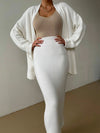 Pocketed Long Sleeve Cardigan and Skirt Sweater Set