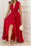 Make an unforgettable entrance in this exquisite maxi dress that balances playful charm with understated sophistication. The plunging neckline and voluminous ruffles create dynamic visual interest, while the sleeveless cut provides modern versatility. Thoughtfully designed to celebrate curves, the dress drapes beautifully from bust to hem, offering both comfort and confidence. Perfect for special occasions or elevated everyday moments, it's the kind of piece that feels both daring and timeless—a wardrobe essential for those who appreciate beauty with personality.